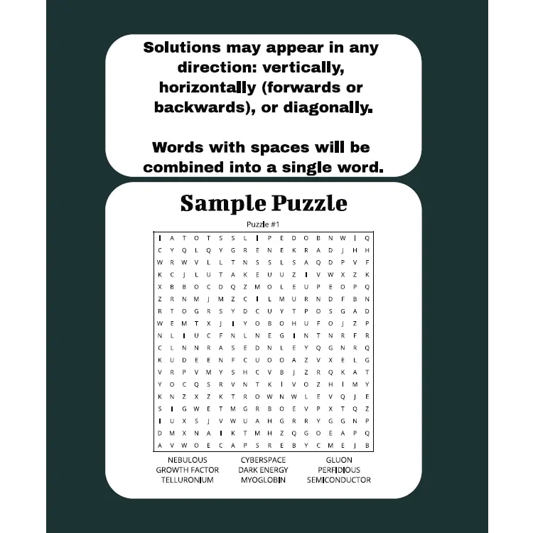 🧠 55 pages of challenging puzzles – Test your skills with tough word lists inspired by your favorite nerdy topics